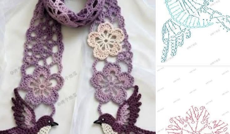 Crochet scarves with motif repetition are timeless, but this Birds Lace Scarf is truly something …