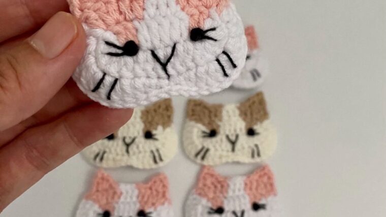 This adorable oval cat head crochet motif is a fun and simple project, perfect for …