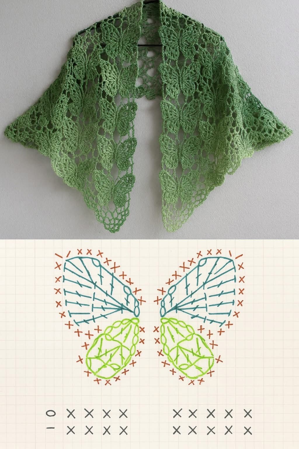 Add more motifs to enlarge your shawl, or make fewer for a smaller scarf. Each butterfly measures about 3.5” × 4.5” (9 × 11 cm) depending on yarn thickness and hook size.