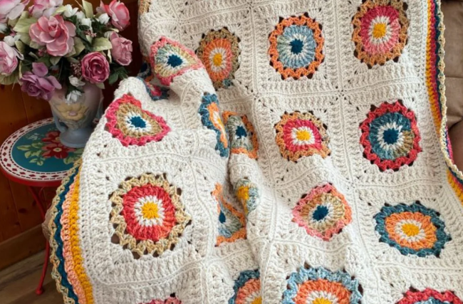 If you love combining classic motifs with playful textures, the Granny Stripes Blanket is the …