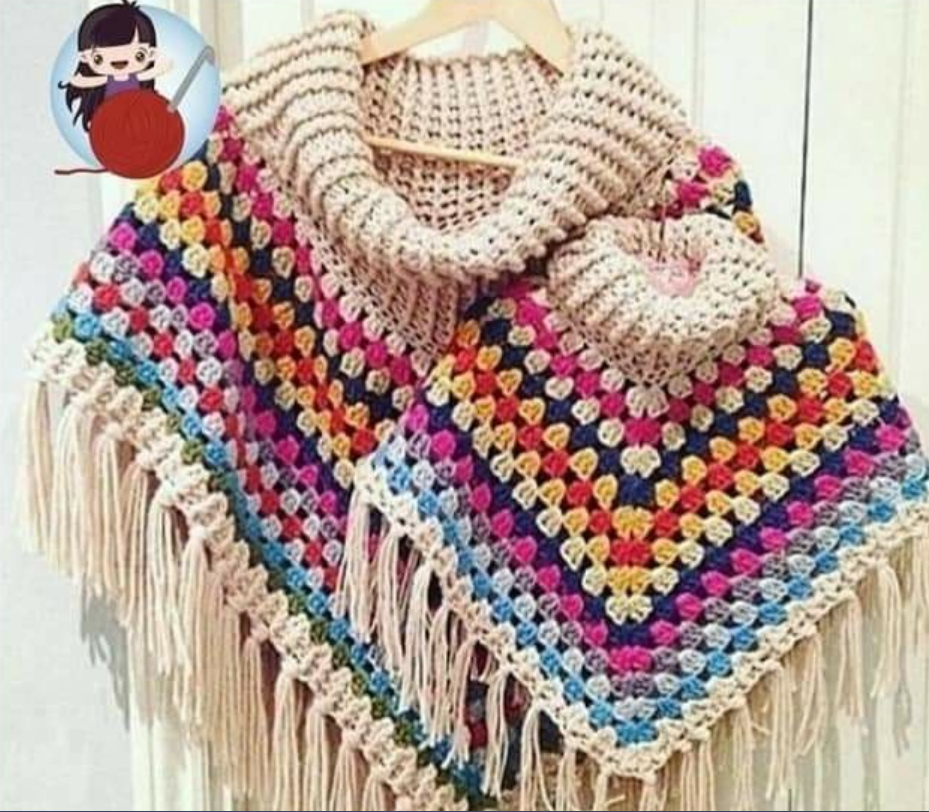 Whether you prefer soft neutrals or bold, colorful stripes, this poncho adapts beautifully to your yarn choices. The textured ribbed cowl provides structure and warmth, while the expanding granny stitch body drapes gracefully over the shoulders.