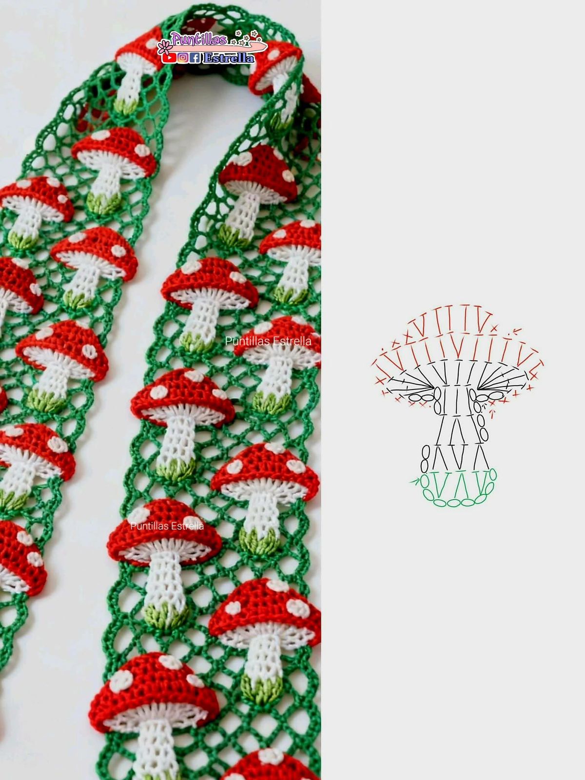 Lightweight and eye-catching, this scarf is perfect for spring, fall, or any outfit that could use a touch of playful handmade beauty. Below, you’ll find the full written pattern based on the diagram, ideal for anyone who prefers text instructions over charts. Let’s bring this enchanting forest design to life! 🌿🍄