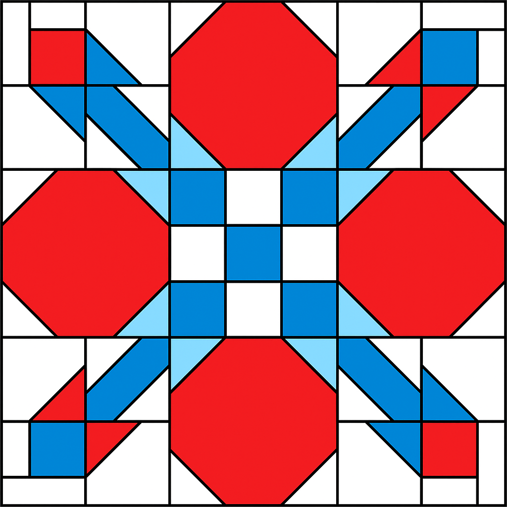 Its crisp intersections and layered composition give the block a sense of depth and motion, perfect for quilters who love designs that balance structure and grace. The Moonbeam block is an ideal choice for anyone who enjoys detailed piecing and a luminous final result.
