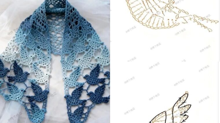 Crochet scarves with motif repetition are timeless, but this Birds Lace Scarf is truly something …