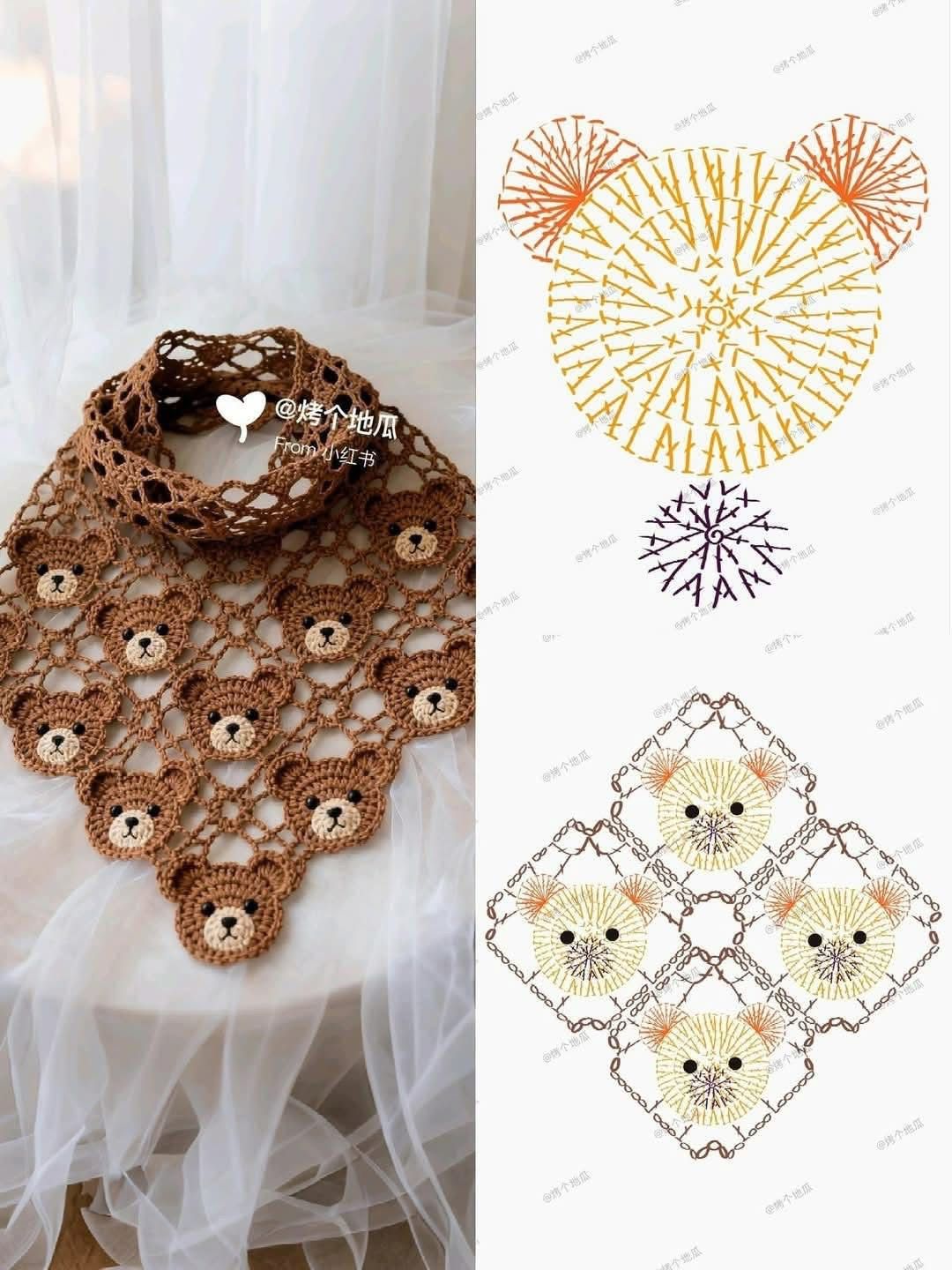 The Teddy Bear Lace Scarf is a delightful project that mixes playful motifs with refined lacework, creating a piece that’s both adorable and elegant. Each bear face adds personality and charm, and when connected through the intricate mesh, the scarf becomes a true handmade treasure. Whether you use classic browns or experiment with fun colors, the result will always be irresistibly cute.