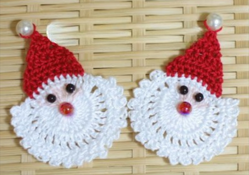 Each version has its own charm one features a traditional Santa face with a round hat, while the other showcases a delicate beard and picot details. These appliqués are perfect for adding a touch of Christmas spirit to stockings, hats, ornaments, or holiday cards.